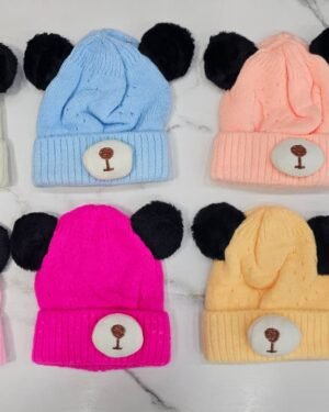 Baby Needs Winter Knitted Woolen Cap with Pom Pom for Kids – Cute Cartoon Design Beanie