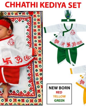 - Includes: Dhoti,Patka,Hip Cover,Mukut,Morpankh,Bansuri,Kamarband,Bajuband,Kundal