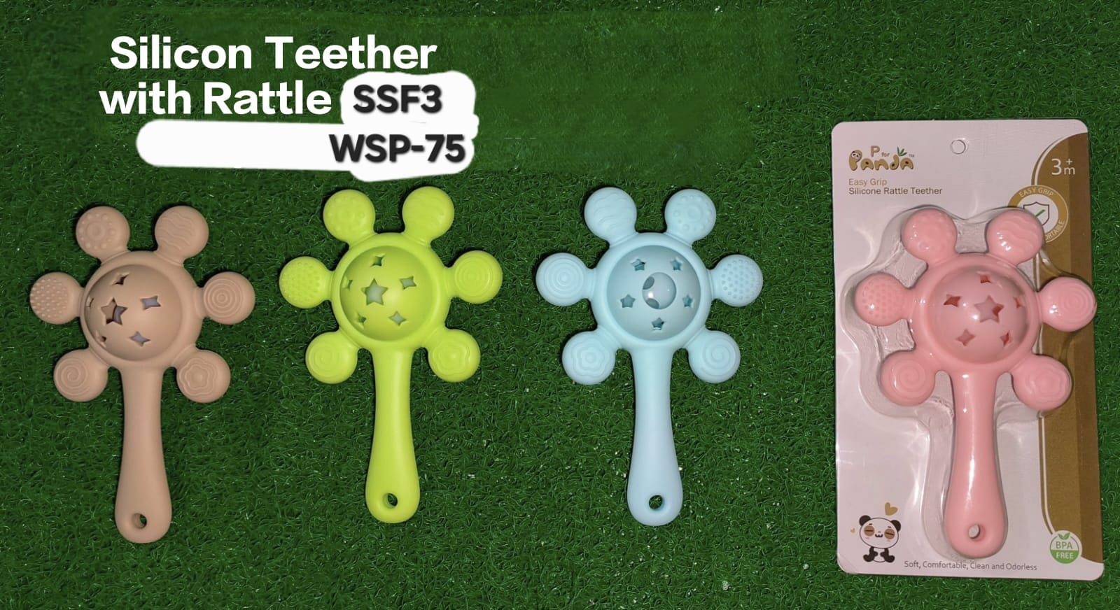 Design: Star-shaped holes, varied textured protrusions for gum massage