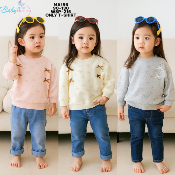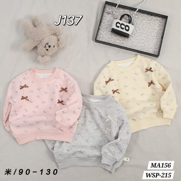 Available in soothing pastel shades—blush pink, creamy beige, and light ivory—this sweatshirt combines style and coziness with ribbed cuffs and hem for a snug fit. Sized for children 90 to 130cm, it’s ideal for toddlers and young kids. Pair it with leggings, jeans, or skirts for everyday outings, special occasions, or photoshoots—your little one will stand out wherever she goes!