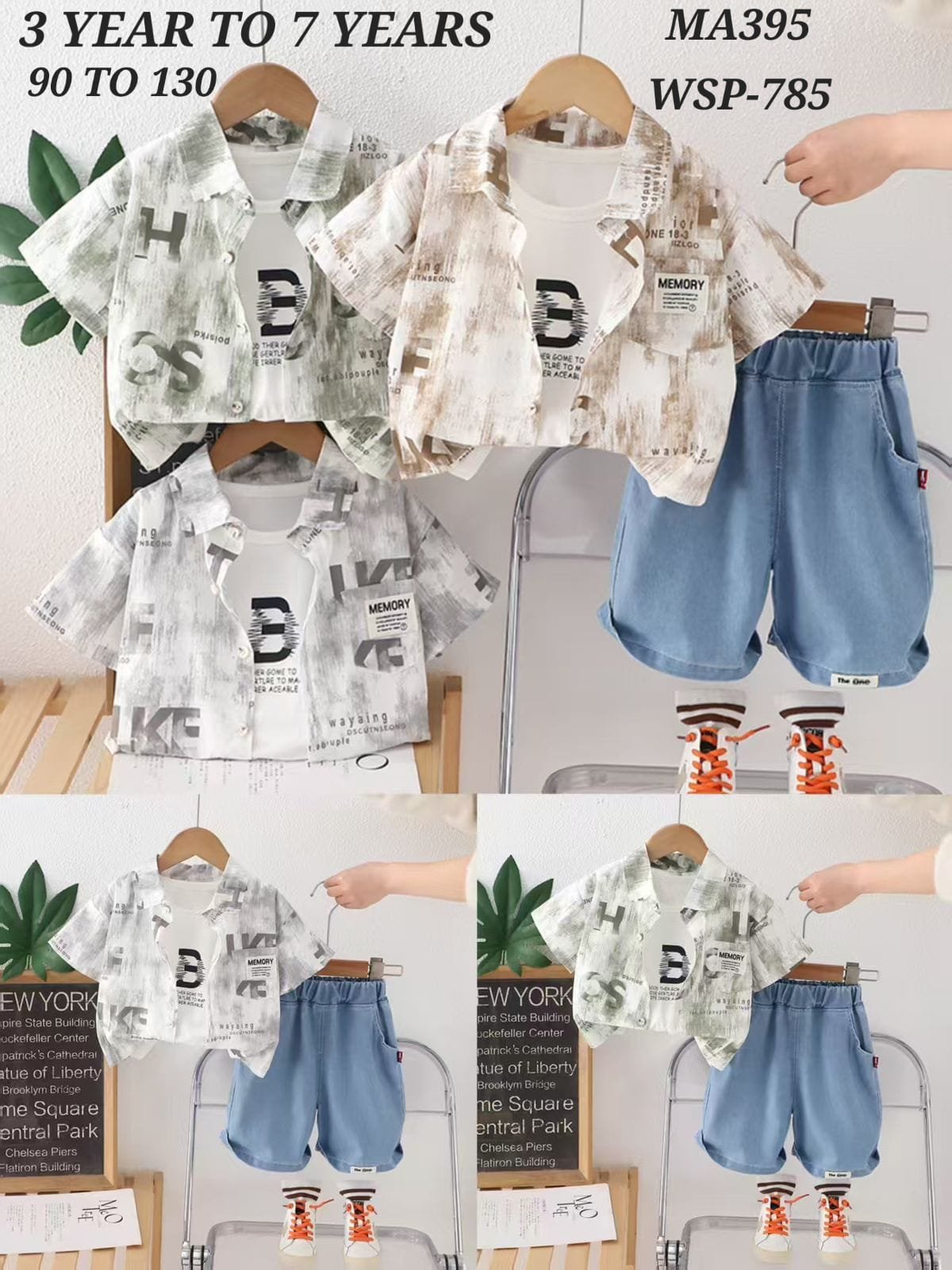 - Complete 3-piece set: Printed Shirt + Inner T-Shirt + Denim Shorts