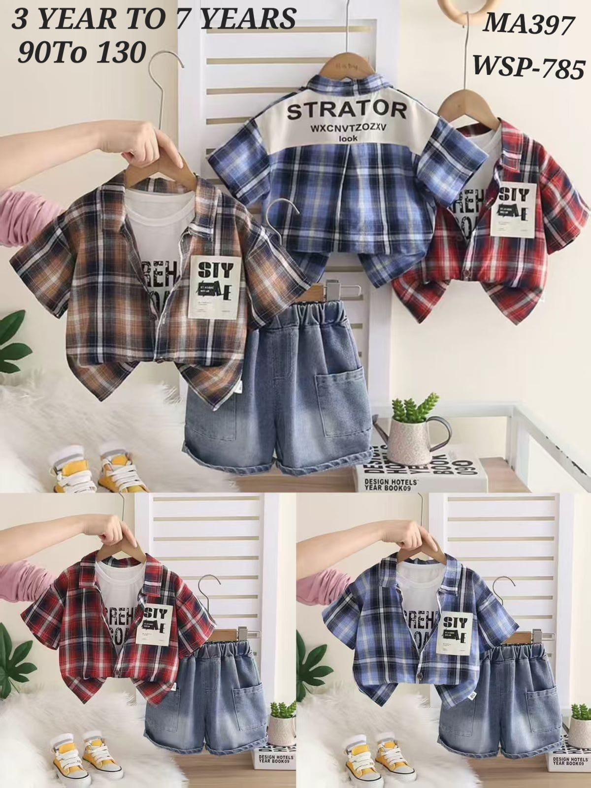 • Complete 3-piece set: Check Shirt + Inner T-Shirt + Denim Shorts