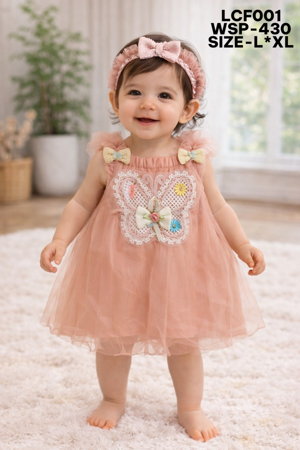 Dress up your little princess in this adorable premium net frock set, designed for comfort and style. Featuring soft layered net fabric, beautiful butterfly/floral lace detailing, and a matching cute bow headband, this outfit is perfect for parties, birthdays, photoshoots, and special occasions. Soft, lightweight, and baby-friendly for all-day comfort. Suitable for baby girls aged 6 months to 3 years.