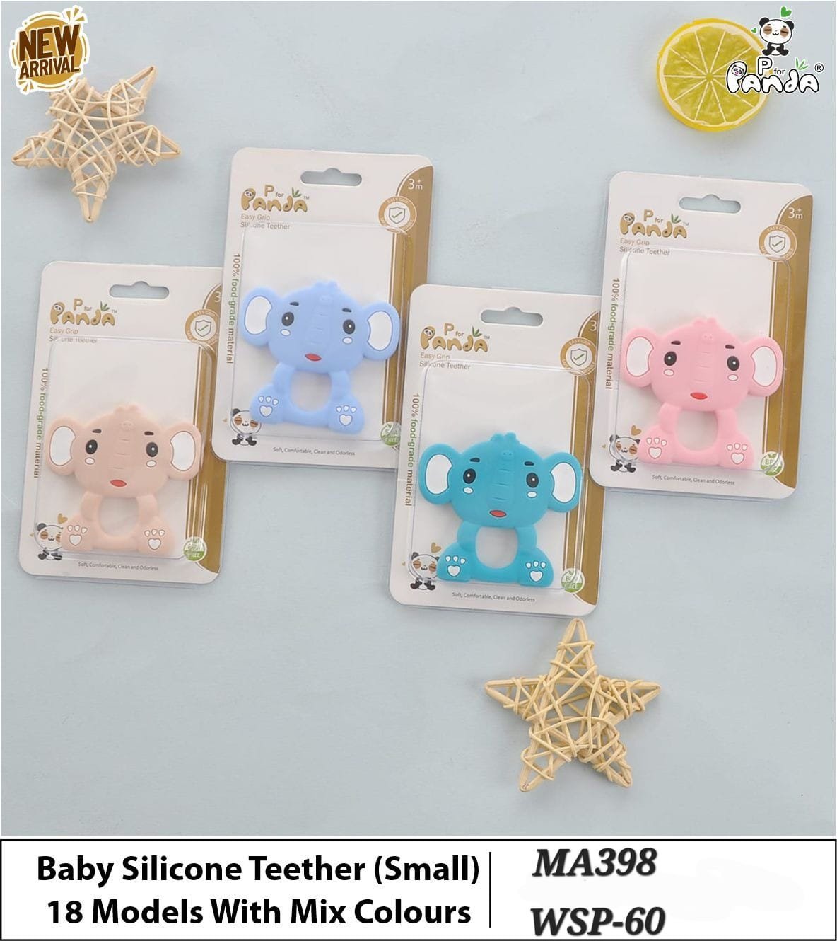 - Cute cartoon shapes make teething fun